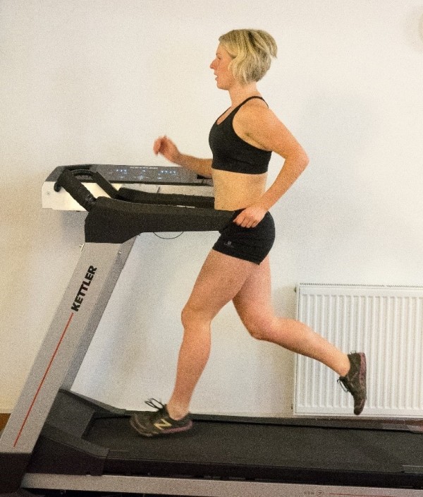 Poslední fotografie ukazuje optimální dopad pro prevenci úrazů i ekonomiku běhu. Toho dosáhneme zvýšením náklonu celého těla. Celého těla myslím, opravdu celého, od kotníků až po hlavu – nejedná se tedy o zlomení se v pase a vystrčení pánve vzad. Dopad by měl být na přední část nohy, ne na špičku. Náklon sám nás už navede do zkrácení kroku a zvýšení její frekvence. Člověk nezvyklý správné frekvence kroku má pocit, že cupitá. Je potřeba jen překlenout první fázi nezvyku, než si běh zafixujete jako přirozený.